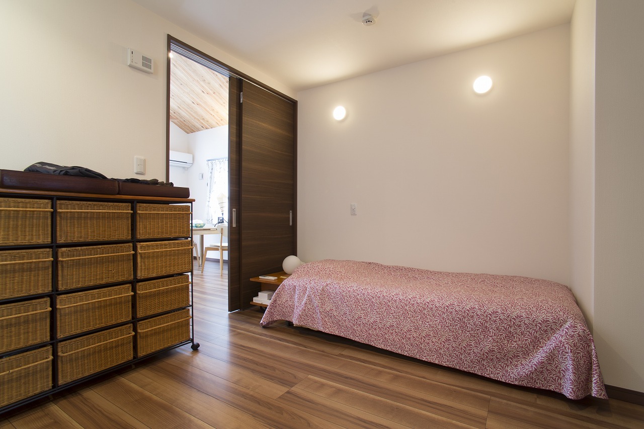 また寝室からも洗面室やトイレに通じる扉を設けることで使い勝手の良い間取りとなる様工夫しました。